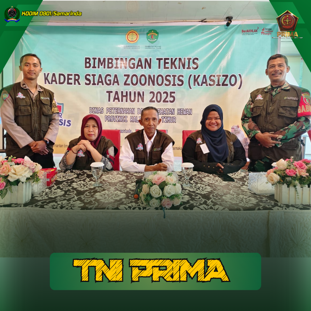 Samarinda- Babinsa Koramil 0901-02/SPNG Serda Azmiadi turut serta dalam kegiatan Bimbingan Teknis Kader Siaga Zoonosis (Kasizo) yang diselenggarakan oleh Dinas Peternakan dan Kesehatan Hewan Provinsi Kalimantan Timur bertempat di kantor kelurahan Sungai Dama . Selasa (05/11/25).