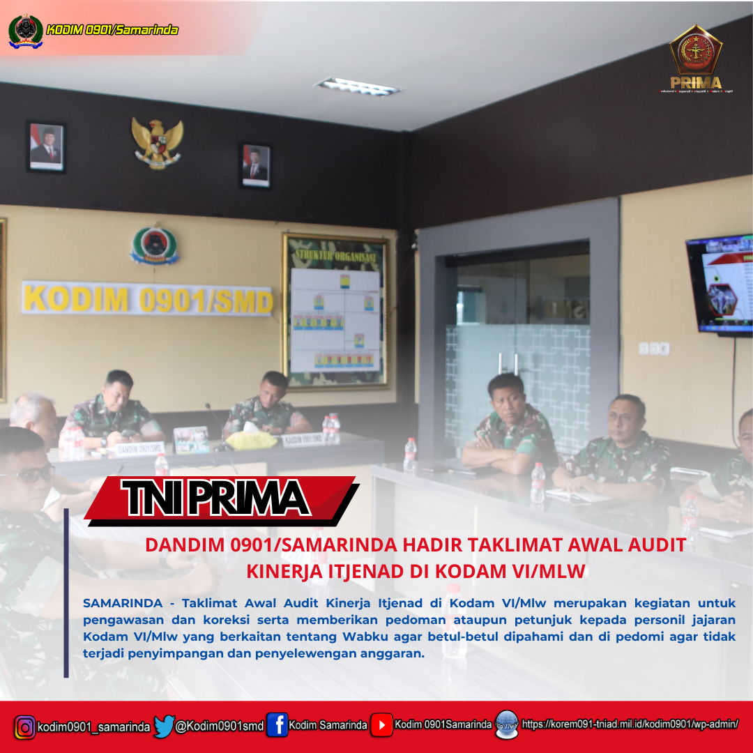 Dandim 0901/Samarinda hadir Taklimat Awal Audit Kinerja Itjenad di Kodam VI/Mlw