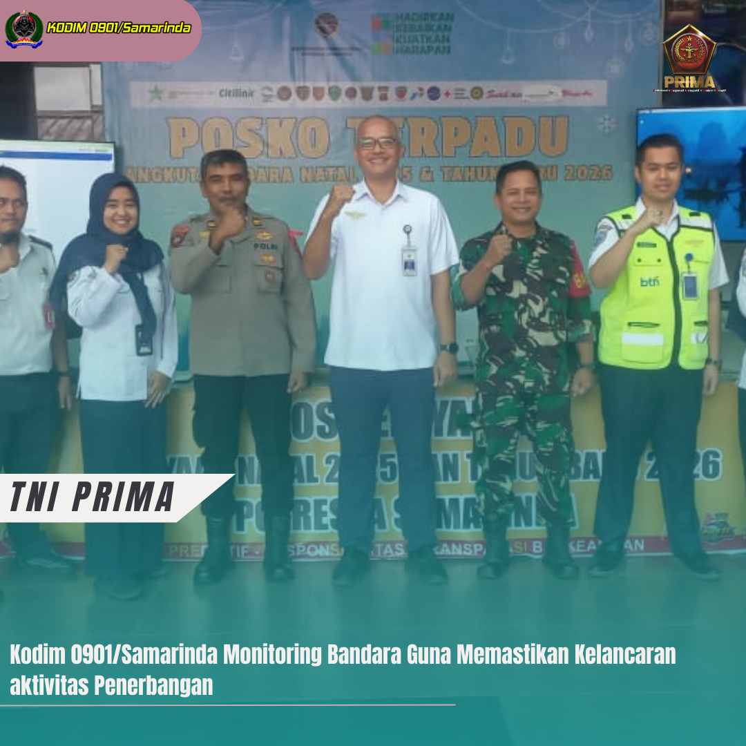 Samarinda — Kodim 0901/Samarinda Melaksanakan pengamanan dan pelayanan arus penumpang udara dalam rangka Operasi Lilin Mahakam 2025 di Bandara APT Pranoto Samarinda berjalan aman, tertib, dan kondusif. Kegiatan tersebut dilaksanakan melalui Pos Pelayanan Terpadu Ops Lilin Mahakam 2025 yang berada di kawasan bandara guna memastikan kelancaran aktivitas penerbangan serta memberikan rasa aman dan nyaman bagi masyarakat pengguna jasa transportasi udara , Rabu ( 24/12/25).