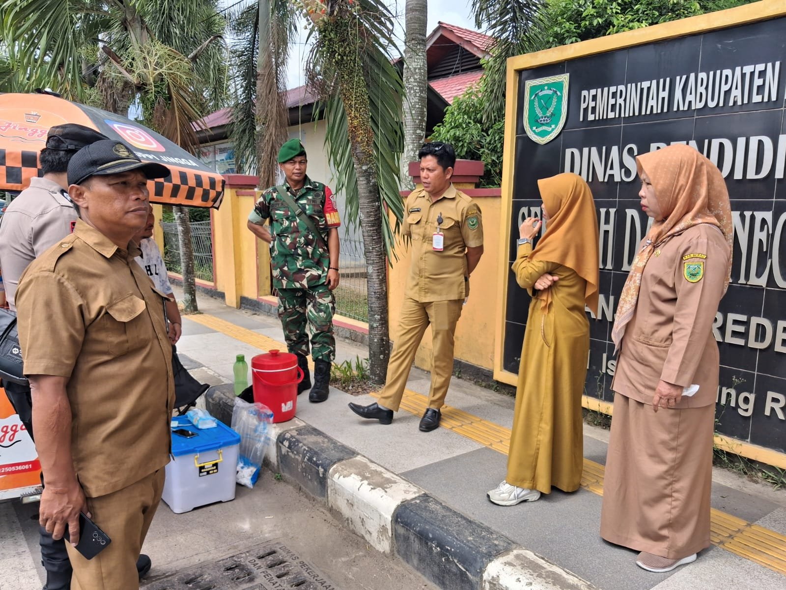 PENDIM 0902/BRU – Babinsa Koramil 04/Tanjung Redeb Kodim 0902/Berau, Pelda Rudy Heriansyah bersama Bhabinkamtibmas Briptu Zulfikar melaksanakan pendampingan kepada Kasi Trantib Kecamatan Tanjung Redeb dan Aparatur Kelurahan dalam melaksanakan sosialisasi kepada pedagang kaki lima di Kelurahan Bugis, Kecamatan Tanjung Redeb, Kabupaten Berau.
