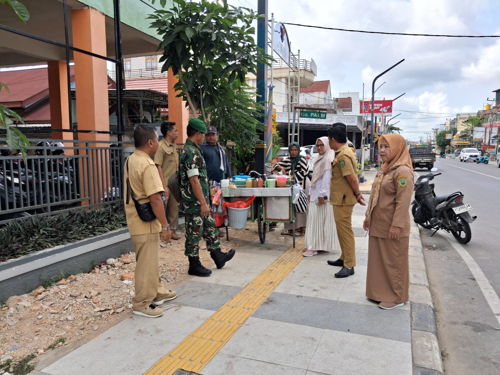 “Sudah menjadi kewajiban sebagai aparat kewilayahan untuk memberikan dukungan kepada aparat pemerintah mensosialisasikan tentang larangan untuk berjualan di atas trotoar, karena mungkin para pedagang ini belum mengetahui perda tentang pemanfaatan lahan publik seperti trotoar yang tidak boleh digunakan berjualan,” ungkap Babinsa Pelda Rudy Heriansyah.