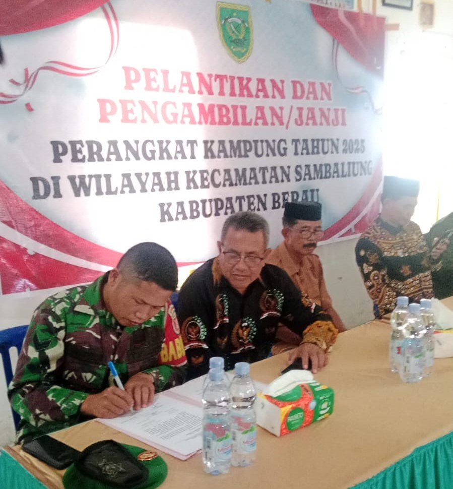 PENDIM 0902/BRU – Bertempat di Gedung Kantor PKK Kampung Pilanjau Kecamatan Sambaliung Kabupaten Berau, telah dilaksanakan kegiatan Pelantikan dan Pengambilan Sumpah Jabatan Calon Perangkat Kampung Pilanjau. Kamis (18/9/2025) mulai pukul 13.30 WITA hingga selesai.