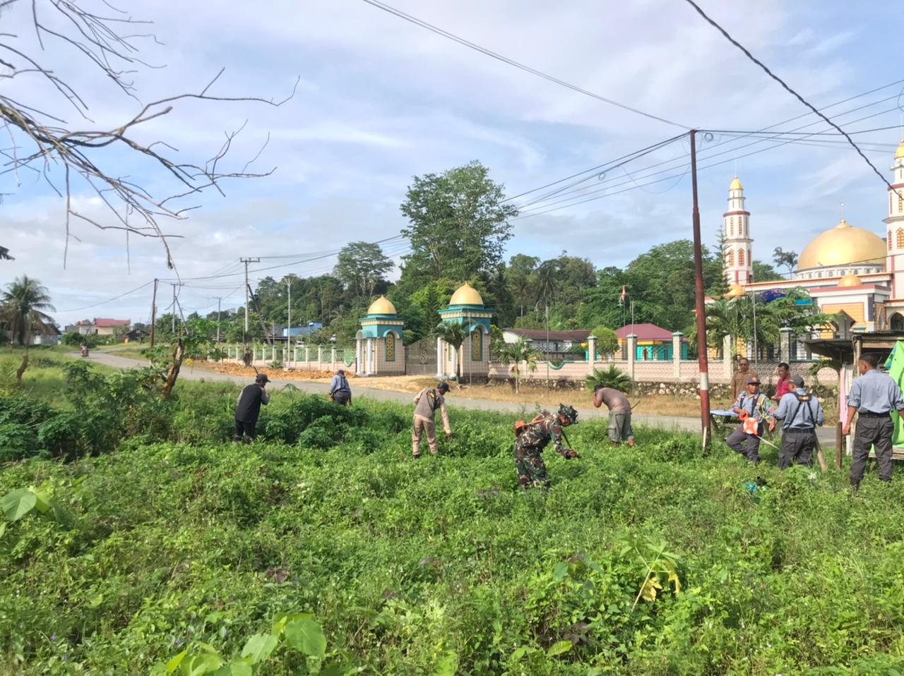 PENDIM 0902/BRU – Babinsa Koramil 10/Batu Putih Kodim 0902/Berau Serda Sam Agus Dedi melaksanakan karya bhakti bersama perangkat desa dan masyarakat setempat dalam kegiatan pembersihan lahan untuk pembangunan KDKMP di Jalan Sultan Hasanuddin RT 03 Desa Tembundan, Kecamatan Batu Putih, Kabupaten Berau, pada Senin (29/12/2025). Kegiatan ini merupakan bentuk nyata peran Babinsa dalam mendukung percepatan pembangunan di wilayah binaan.
