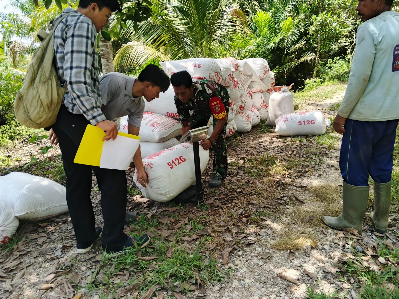 PENDIM 0902/BRU – Bintara Pembina Desa (Babinsa) Koramil 02/Gunung Tabur Kodim 0902/Berau, Sertu Ahmat, melaksanakan pendampingan kegiatan penyerapan gabah oleh Tim Jemput Gabah Bulog Kabupaten Berau di wilayah binaannya, Kampung Merancang Ilir, Kecamatan Gunung Tabur, Jumat (6/2/2026).