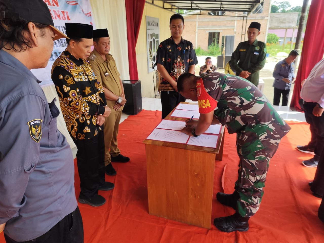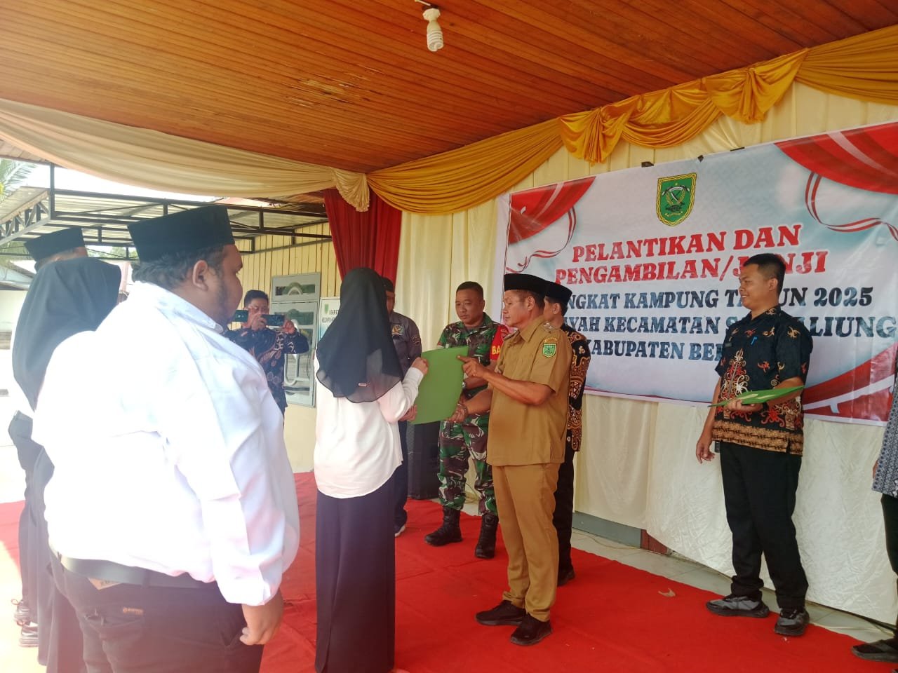 PENDIM 0902/BRU – Babinsa Koramil 05/SBL Kodim 0902/Berau, Kopda Andriansyah, tampak hadir dalam acara Pelantikan dan Pengambilan sumpah janji perangkat Kampung Pesayan. Kegiatan pelantikan dan pengambilan sumpah janji diselenggarakan di Depan Kantor Kepala Kampung Pesayan, Jalan A. Yani RT. 01 Kampung Pesayan, Kecamatan Sambaliung, Kabupaten Berau. Kamis (18/9/2025).
