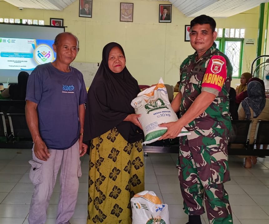 Babinsa Serma Gunawan Wali Alas saat mendampingi pembagian beras mengatakan saat ini sebanyak 10 KK di Rantau Panjang mendapatkan bantuan beras dengan masing-masing mendapatkan dua karung 20 Kg yang disalurkan langsung oleh Bulog melalui pemerintahan kampung.