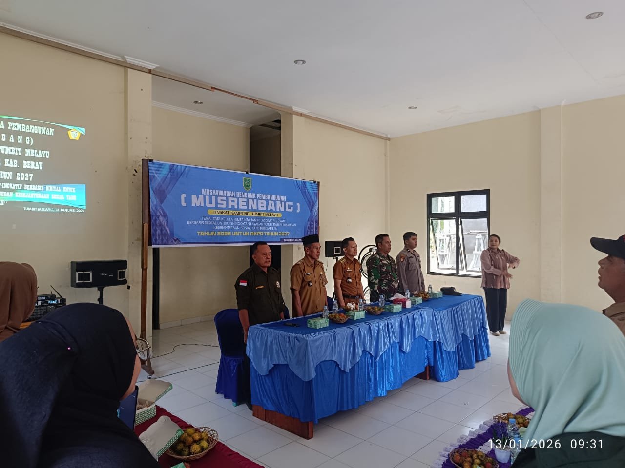 PENDIM 0902/BRU – Dalam upaya percepatan pembangunan yang ada di wilayah binaan, Babinsa Koramil 04/Tanjung Redeb Kodim 0902/Berau Sertu Ramdani hadiri acara Musyawarah Perencanaan Pembangunan Desa (Musrenbangdes) Tahun 2027 bertempat di Gedung Perintis RT 07 Desa Tumbit Melayu, Kecamatan Teluk Bayur, Kabupaten Berau, pada Selasa (13/1/2026).