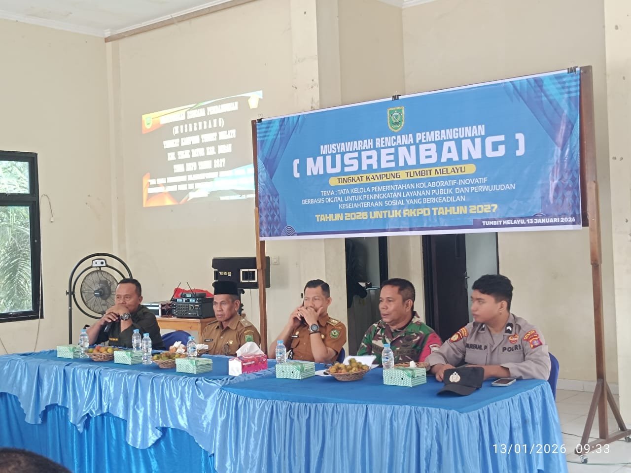 Kepala desa Tumbit Melayu bapak Samsuddin menyampaikan keterlibatan Babinsa dalam Musrenbang ini sangat penting selain untuk mendampingi warga masyarakat juga untuk memastikan pembangunan yang ada di desa dapat berjalan sesuai dengan rencana dan harapan warga.