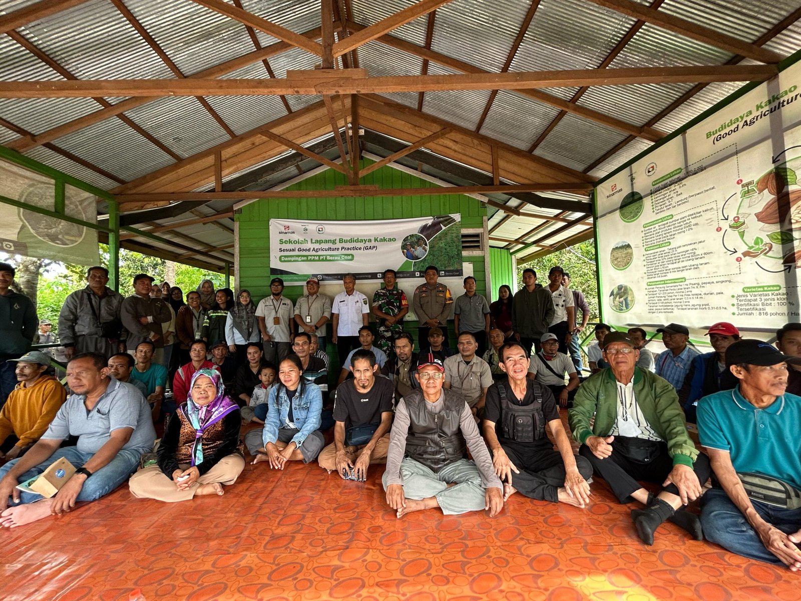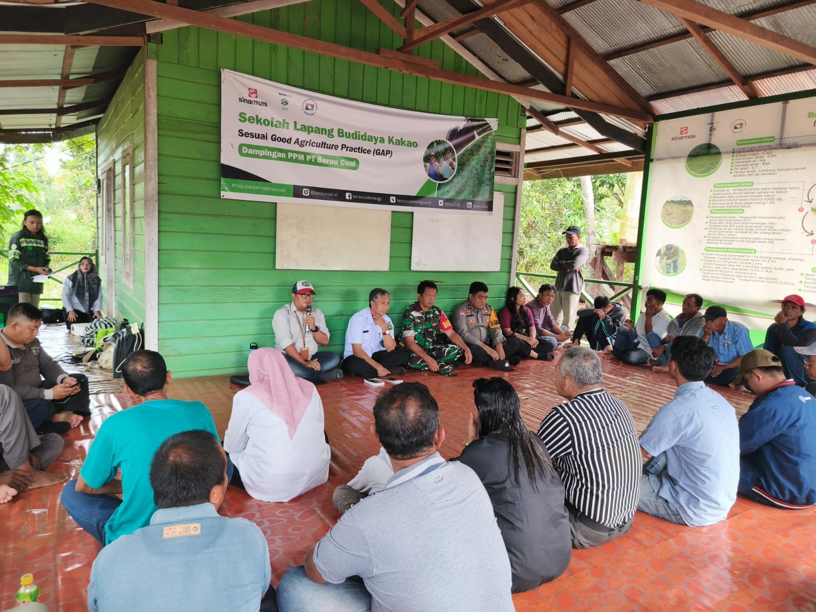 PENDIM 0902/BRU – Dalam rangka mendorong prospek komoditi petani kakao atau coklat di wilayah binaan, Babinsa Koramil 0902-02/Gunung Tabur Serda Rudiansyah melaksakan monitoring dan pendapingan kegiatan Sekolah Lapangan Budidaya Kakao atau coklat yang di selenggarakan oleh PT. Berau Coal, bertempat di Pendopo Pelatihan Kakao, Jalan Tasuk RT. 004 Sungai Enau, Kampung Birang, Kecamatan Gunung Tabur, Kabupaten Berau. Rabu (13/8/2025).