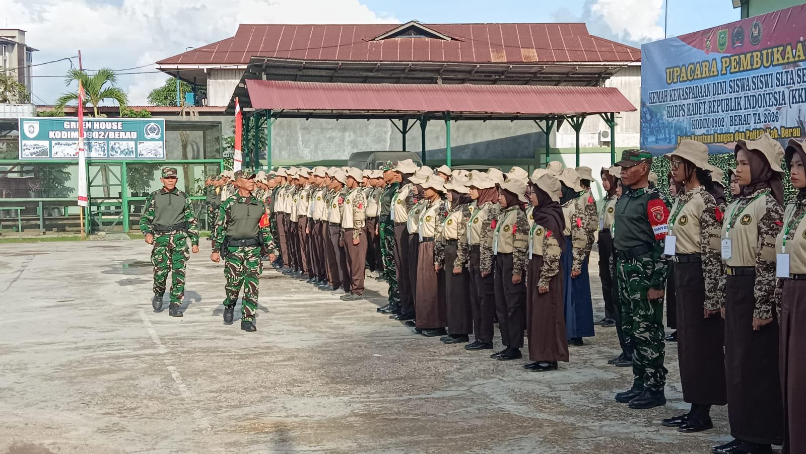 PENDIM 0902/BRU – Kodim 0902/Berau melaksanakan Upacara Pembukaan Latihan Korps Kadet Republik Indonesia (KKRI) Tahun 2026 yang berlangsung di Lapangan Makodim 0902/Berau, Jl. Pulau Semama Kel. Tanjung Redeb Kec. Tanjung Redeb Kab. Berau.