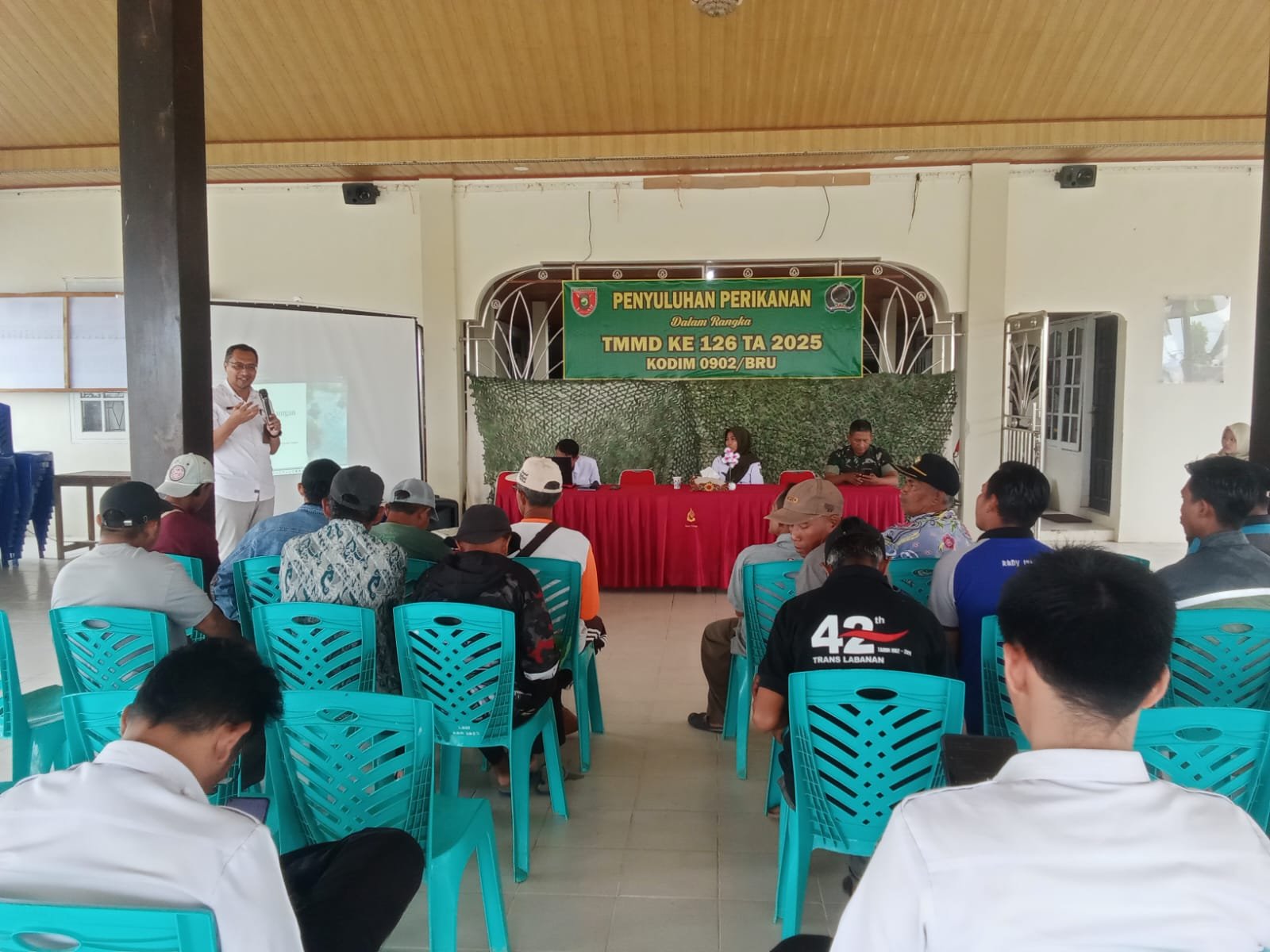 PENDIM 0902/BRU – Dalam upaya meningkatkan keterampilan serta kesejahteraan masyarakat, khususnya warga Kampung Labanan Makmur, Kecamatan Teluk Bayur, Satgas TMMD ke-126 Kodim 0902/Berau menggelar penyuluhan perikanan sebagai bagian dari rangkaian kegiatan sasaran non fisik, Jumat (31/10/25).