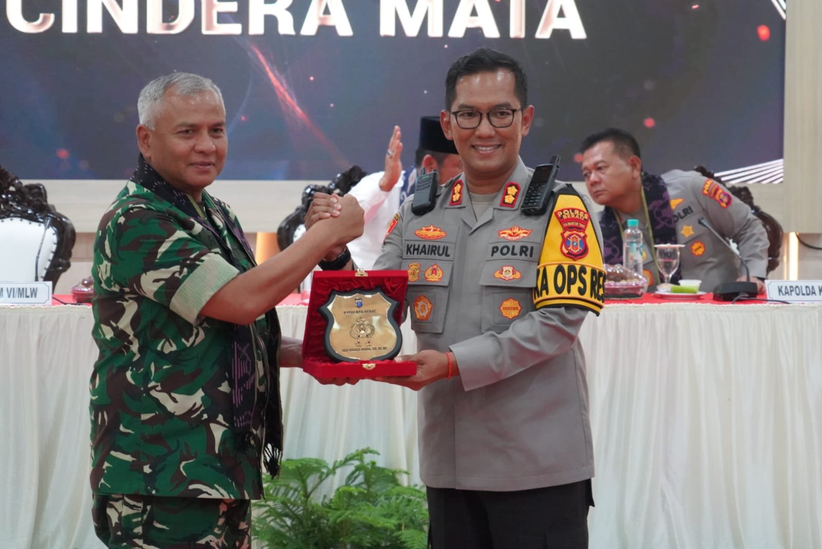 “Mari kita sama melaksanakan peran masing-masing dengan komunikasi koordinasi yang baik, setiap ada kekurangan dan masalah pasti lapor dengan Gubernur dan Kapolda sehingga permasalahan tersebut bisa di selesaikan. Mari kita capai program pemerintah pusat dan daerah semaksimal mungkin dengan asta cita kita sukseskan dan saya sdh perintahkan semua jajaran saya untuk mendukung Pemerintah Daerah,” tambahnya.