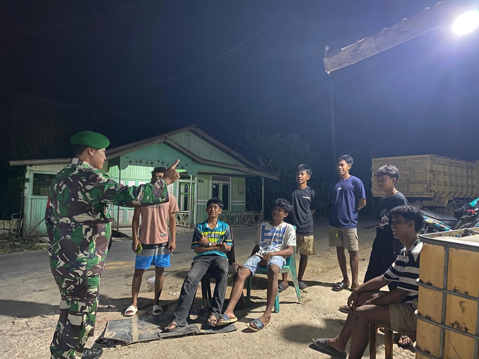 Patroli Malam, Babinsa Koramil 01/Segah Himbau Warga Waspada Pendatang dan Jauhi Narkoba