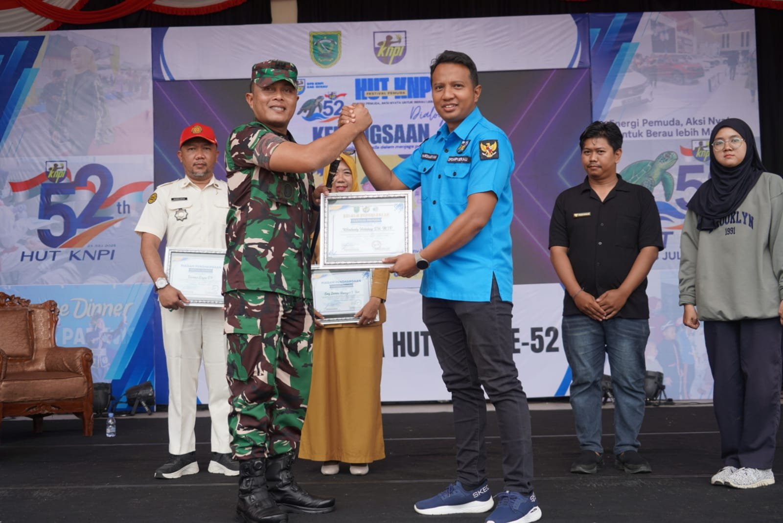 Kegiatan Dialog Kebangsaan adalah salah satu rangkaian peringatan HUT ke-52 KNPI Tahun 2025, Dandim 0902/Berau, Letkol Inf Wirahady Harahap, S.H., M.I.P., bersama Kabid Ideologi, Wawasan Kebangsaan dan Karakter Bangsa Kesbangpol Berau, Emy Lestari, S.Hut dan Ketua PPI Kab. Berau Desmus Erysa, S.P, menjadi narasumber dalam kegiatan itu. Dan dihadiri oleh Ketua DPK KNPI Tanjung Redeb, Ketua Purna Paskibraka Indonesia, Ketua SAPMA Pemuda Pancasila Berau, Ketua PIK Remaja Berau, Ketua Asosiasi Duta Wisata Berau, Ketua HMI Cab. Berau, Ketua BEM UMB, SMAN 1 Berau, SMAN 4 Berau, SMA Muhammadiyah Berau, dan SMA PGRI Berau serta Tamu undangan lainnya.