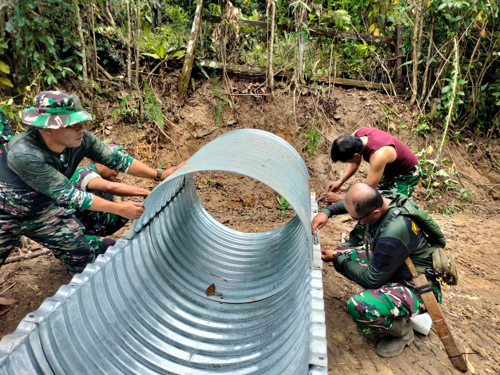Dansatgas TMMD ke-126 Kodim 0902/Berau melalui Pasiter Kodim Kapten Arm Harry menjelaskan, beberapa titik pembuatan gorong-gorong dikerjakan di lokasi sasaran fisik untuk antisipasi tergenang nya air pada saluran air dan mengatur aliran air untuk mengurangi resiko longsor dan banjir.