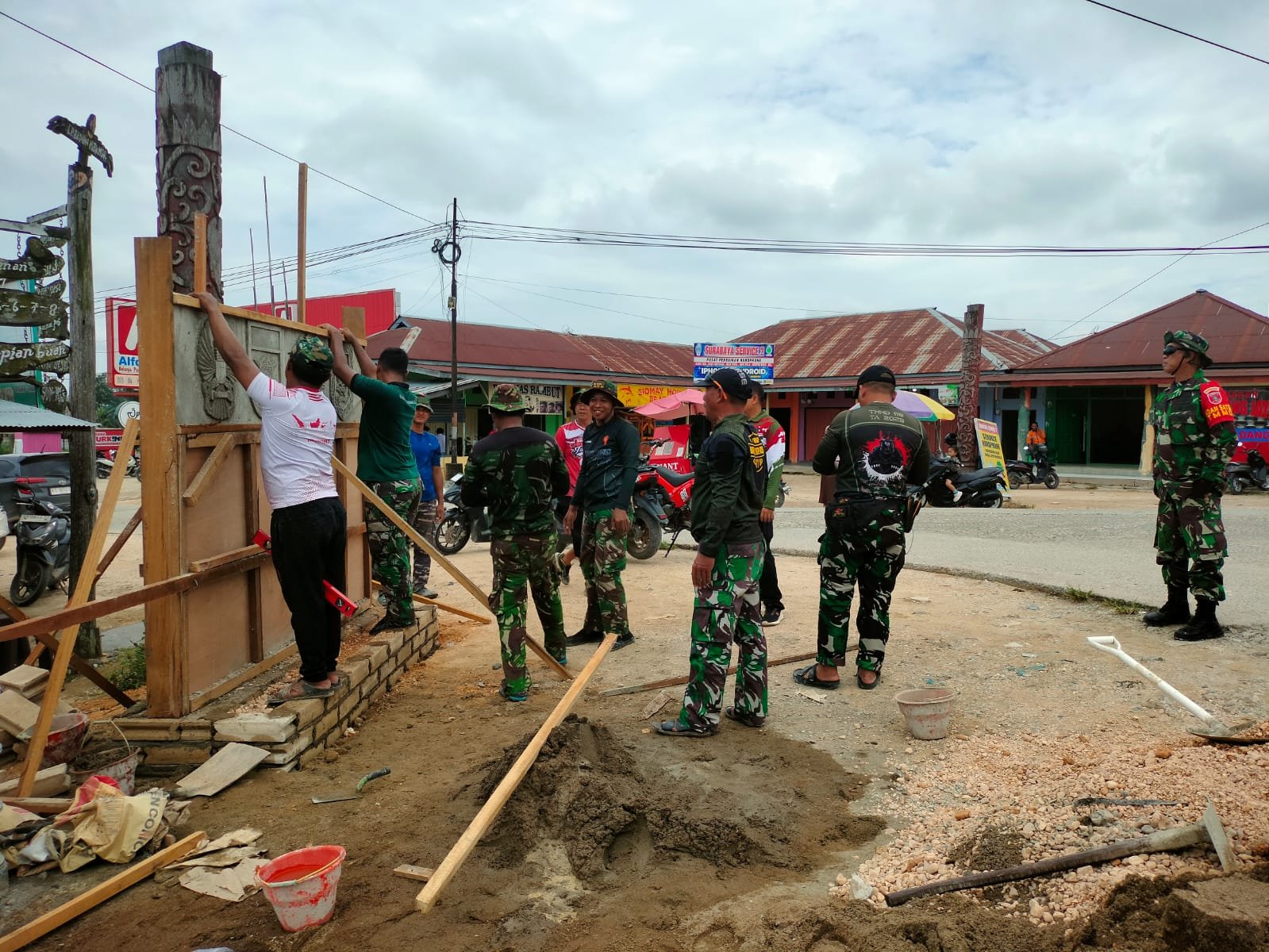 PENDIM 0902/BRU – Satuan Tugas (Satgas) TMMD 126 Kodim 0902/Berau bersama masyarakat bergotong royong membangun tugu prasasti TMMD ke 126 Kodim 0902/Berau, di Kampung Labanan Makmur, Kamis (31/10).
