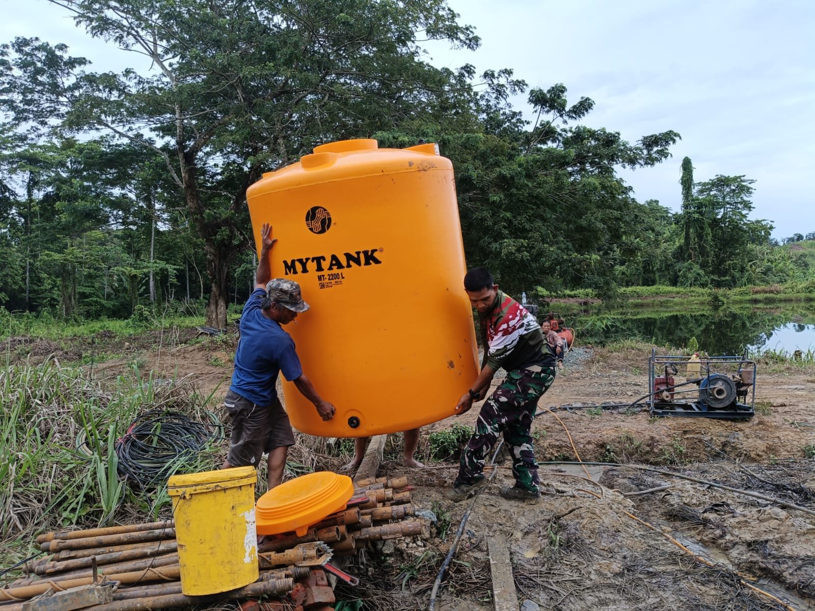 PENDIM 0902/BRU – Dalam rangka mendukung pembangunan infrastruktur dasar bagi masyarakat, Satgas TNI Manunggal Membangun Desa (TMMD) Reguler ke-126 Kodim 0902/Berau bersama warga Kampung Labanan Makmur, Kecamatan Teluk Bayur, Kabupaten Berau, melaksanakan pemasangan tandon sumur bor.