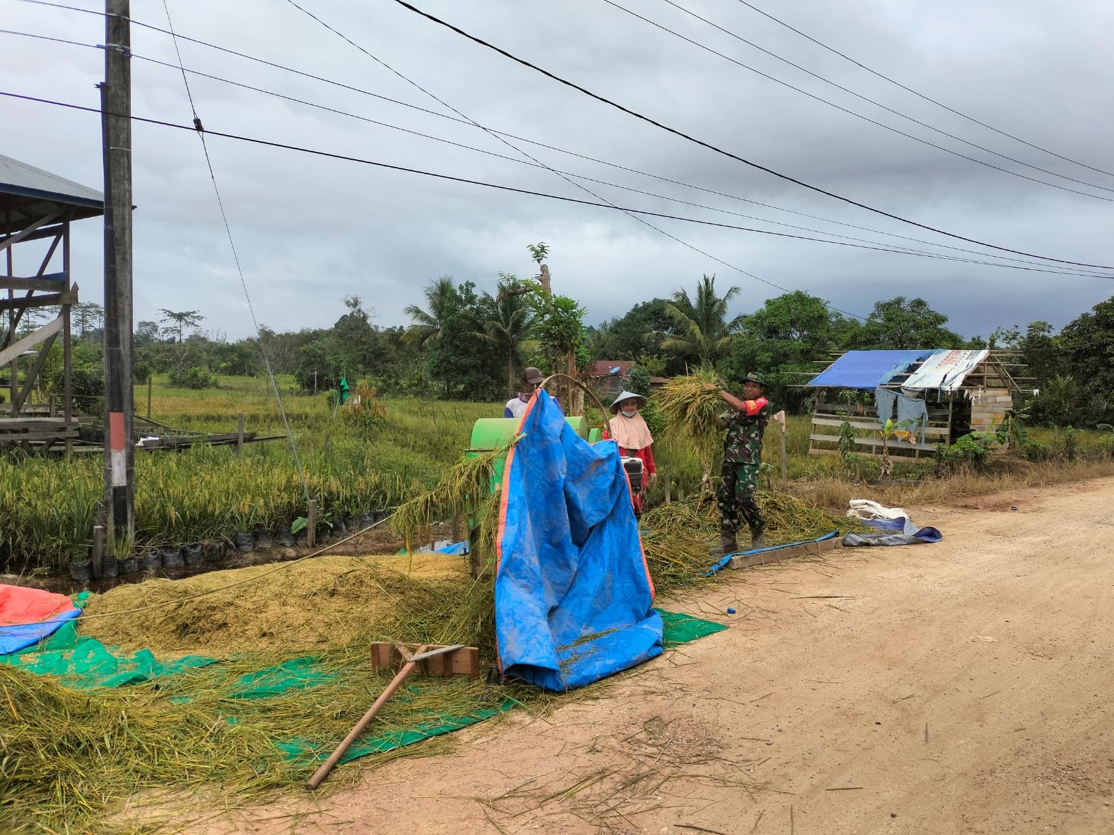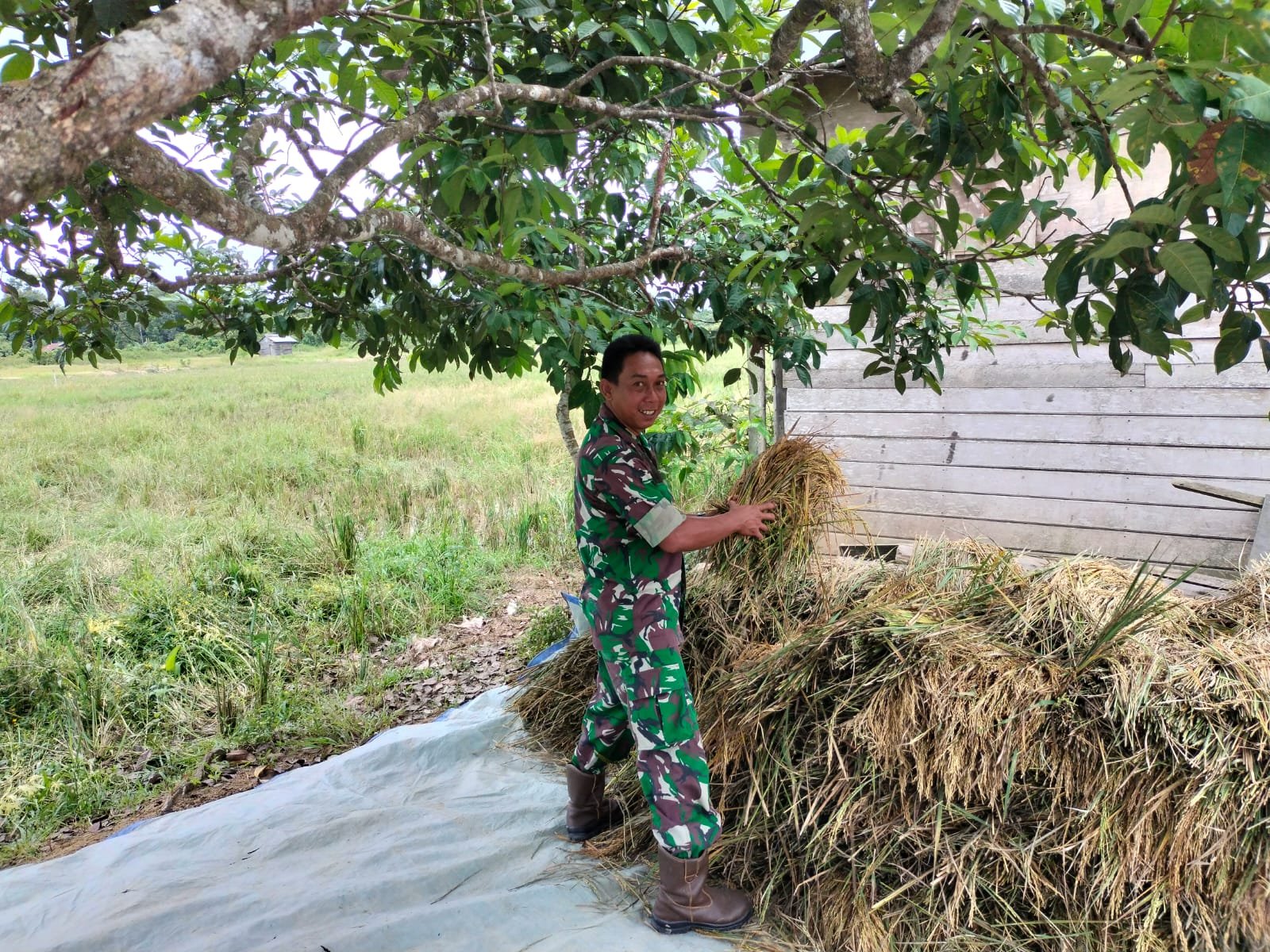 Pelda Amik mengungkapkan, “ini sudah merupakan tugas kami sebagai aparatur kewilayahan membantu para petani dalam hal pertanian sebagai wujud dukungan TNI kepada petani dalam rangka program ketahanan pangan nasional”, ujarnya,dengan semangat ikut serta terjun langsung ke sawah membantu petani desa binaannya saat memanen padi.
