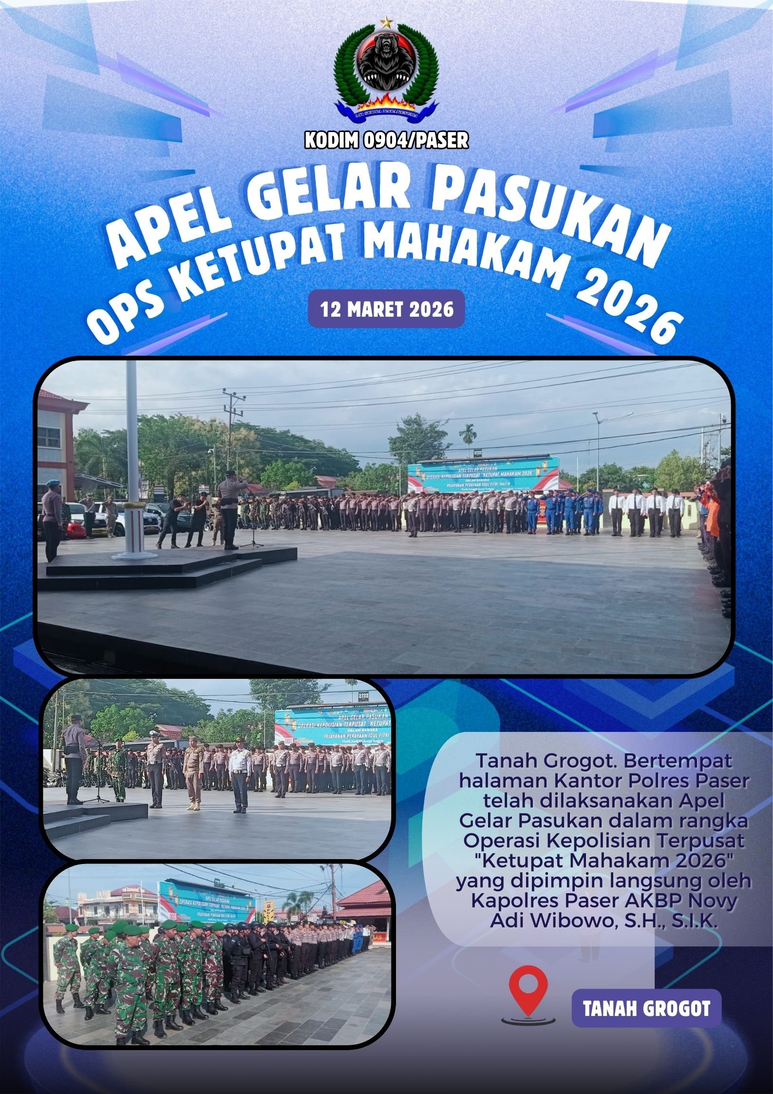Apel Gelar Pasukan Operasi Terpusat “Ketupat Mahakam 2026” ini bertujuan dalam rangka pelayanan Perayaan Idul Fitri 1447 H tahun 2026 diwilayah Kabupaten Paser.
