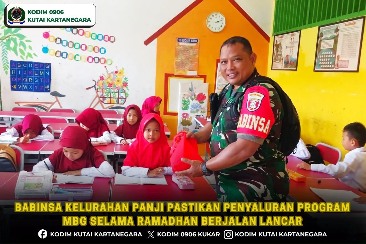 Kutai Kartanegara, korem091tniad– Guna memastikan penyaluran Program Makan Bergizi Gratis (MBG) berjalan dengan tertib dan aman selama bulan suci Ramadhan, Babinsa Kelurahan Panji, Koramil 0906-01/Tenggarong, Serka Edi Sutrisno melaksanakan monitoring langsung proses pendistribusian MBG kepada para pelajar di wilayah Kecamatan Tenggarong, Kabupaten Kutai Kartanegara (Kukar). Kamis, 05/03/2026.