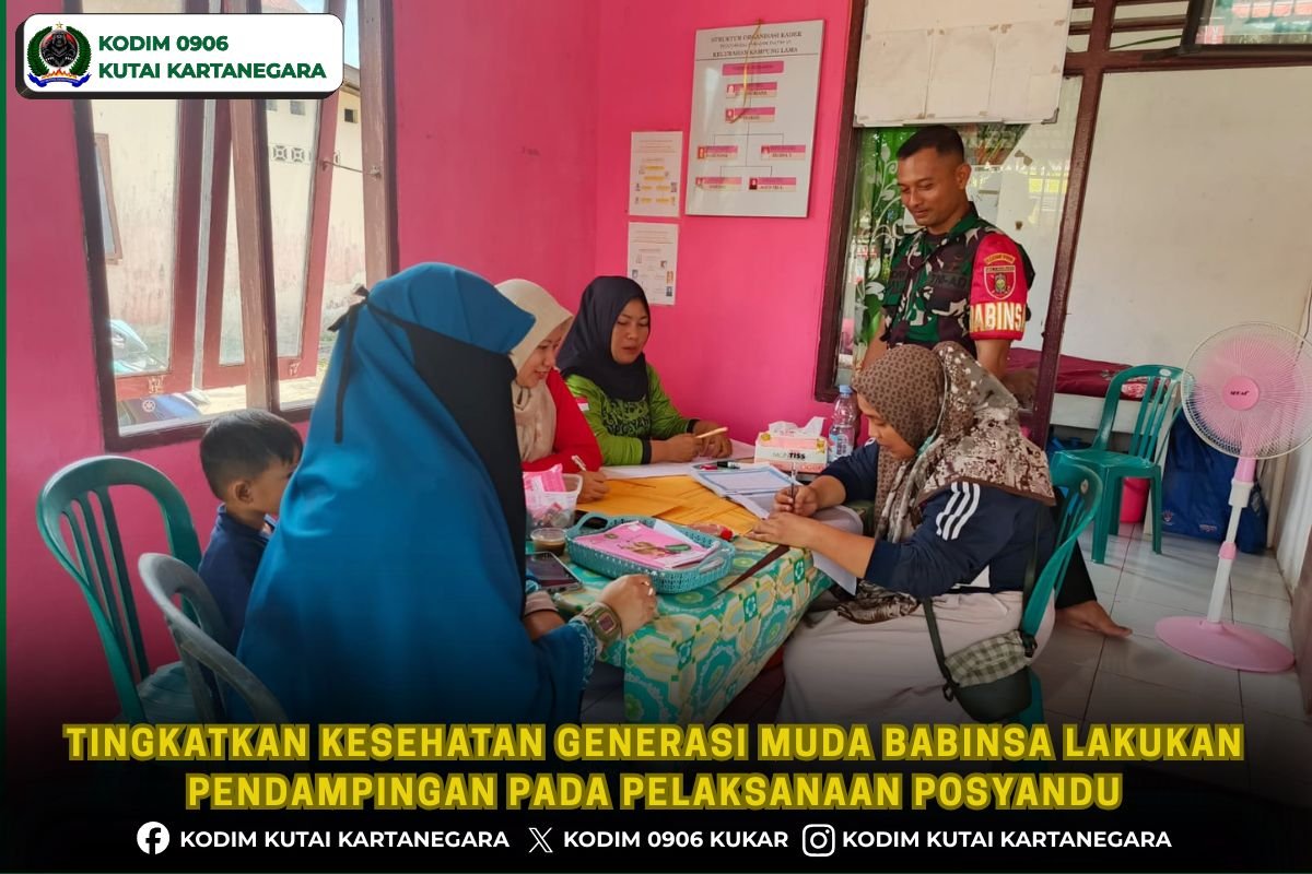 Pendampingan yang dilakukan oleh Babinsa merupakan salah satu bentuk wujud sinergi antara TNI dengan tenaga kesehatan yang ada di kelurahan dalam mendukung tumbuh kembang anak, dalam kegiatan posyandu tersebut Babinsa turut membantu tenaga kesehatan melakukan penimbangan, pengukuran tinggi badan serta pemberian vitamin dan pemeriksaan kesehatan bagi balita selain itu kader kesehatan memberikan penyuluhan terkait pentingnya gizi seimbang yang baik bagi anak.