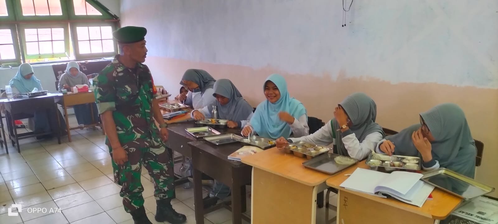 BONTANG – Babinsa Koramil 0908-01/Loktuan, Kodim 0908/Bontang, Serka Aris melaksanakan kegiatan monitoring pendistribusian dan pelaksanaan Makan Bergizi Gratis (MBG) di SMA Islam Terpadu Yabis di Wilayah RT 45, Kelurahan Belimbing, Kecamatan Bontang Barat, Kota Bontang, Selasa (07/10/2025).
