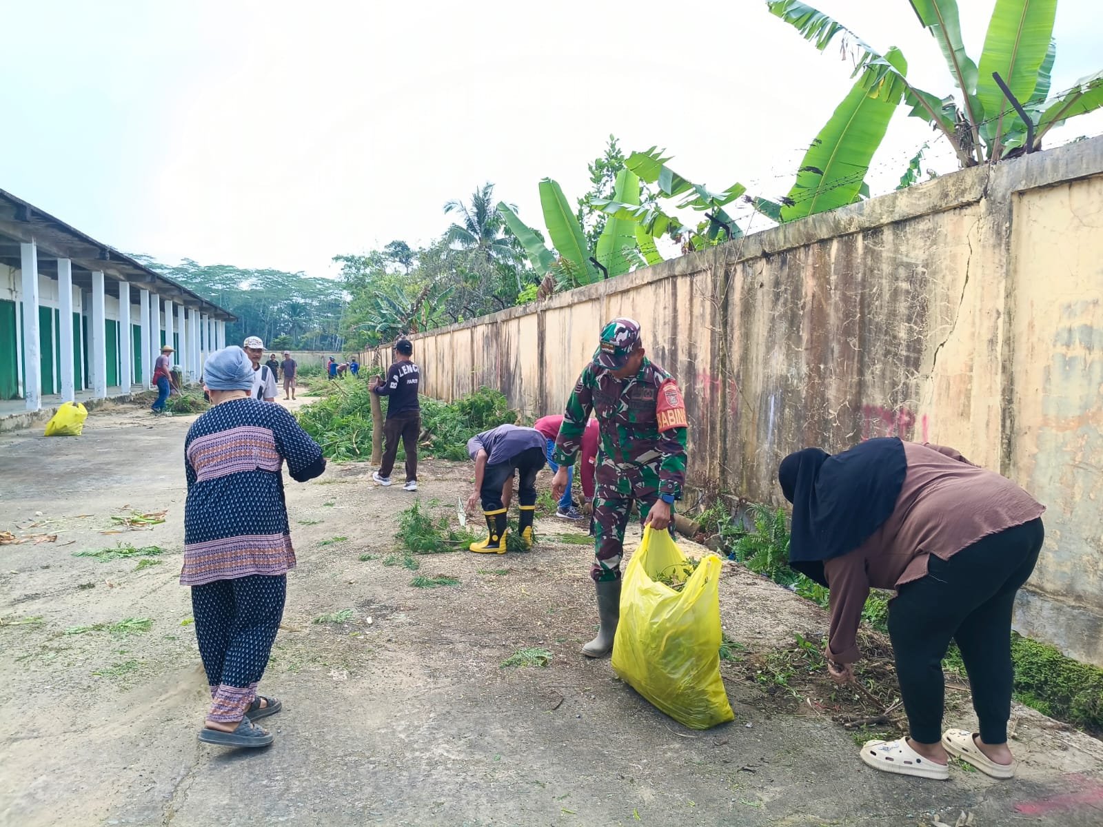 Gotong royong difokuskan pada pembersihan, rumput yang Sudah panjang, dan sampah di sekitar pasar, penataan lingkungan serta upaya menciptakan kondisi pasar yang bersih dan tertib.