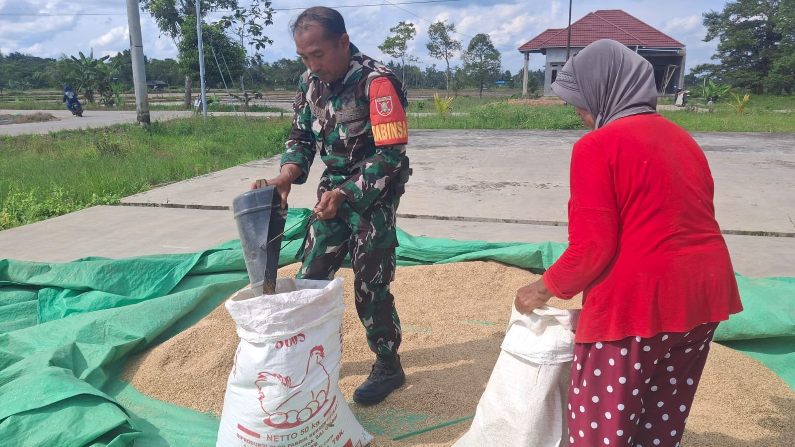 ANGGANA – Babinsa Koramil 0908-03/Anggana, Kodim 0908/Bontang, Serka Samsul, melaksanakan kegiatan pendampingan kepada warga binaan dengan membantu Bapak Eko mengangkut padi yang telah selesai dijemur di Desa Sidomulyo, Kecamatan Anggana, Kabupaten Kutai Kartanegara, Kamis (15/01/2026).
