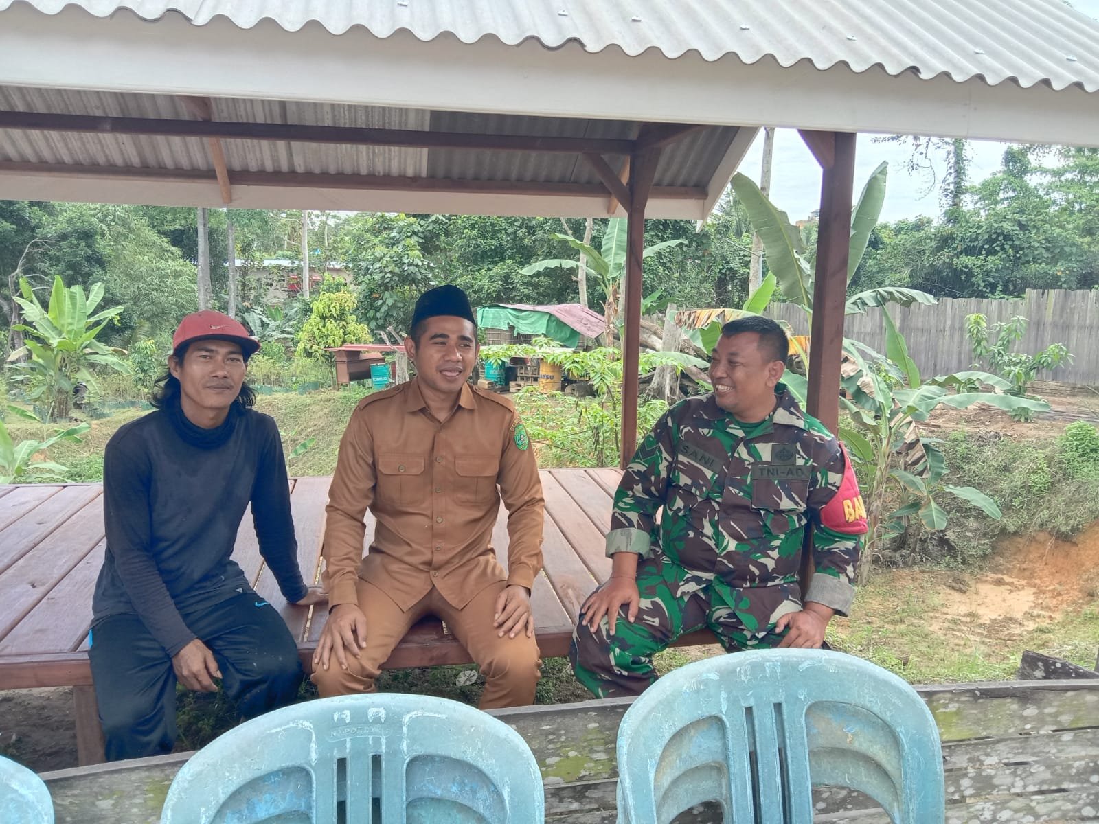 Marangkayu – Babinsa Koramil 0908-04/Marangkayu, Sertu Sani, melaksanakan kegiatan Komunikasi Sosial (Komsos) bersama Bapak Riski selaku Kasi Pemerintahan dan warga RT 05 Desa Santan Ulu, Kecamatan Marangkayu, Selasa (24/02/2026).