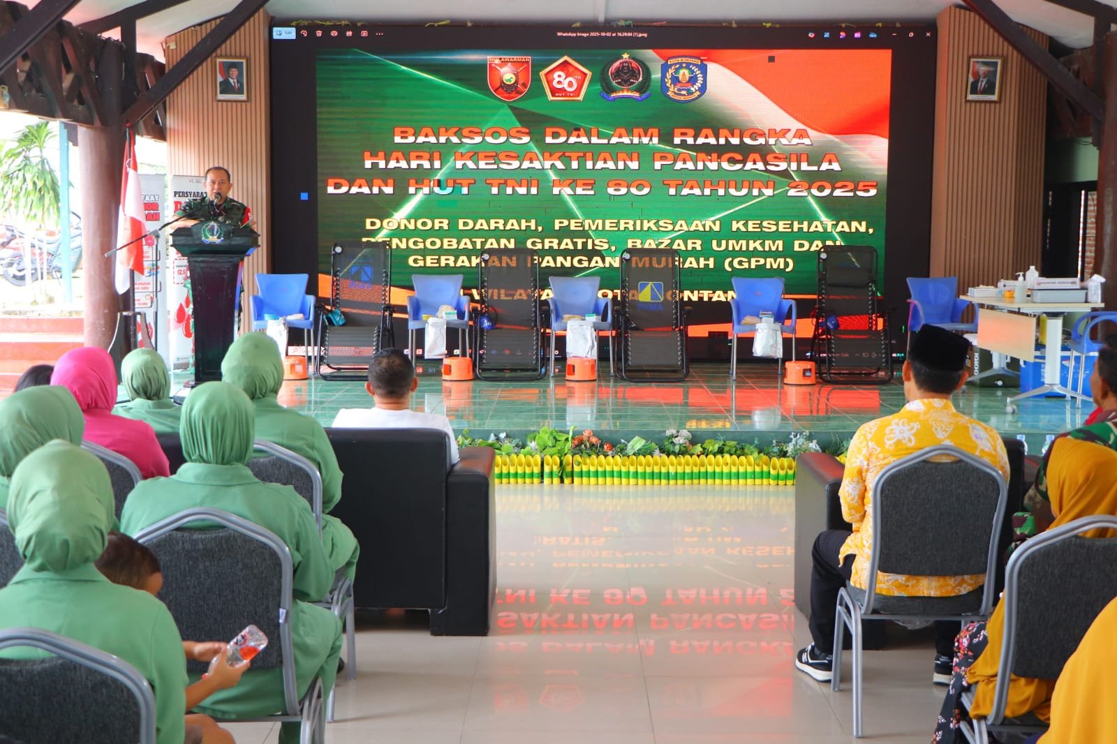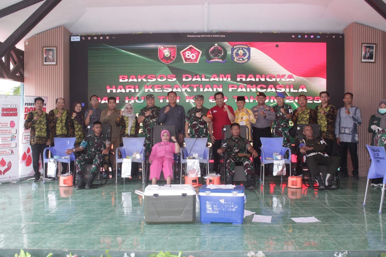 BONTANG – Dalam Rangka Hari Kesaktian Pancasila dan Menyambut Hari Ulang Tahun (HUT) TNI ke-80, Kodim 0908/Bontang bekerja sama pemerintah kota Bontang menggelar kegiatan bakti sosial (baksos) berupa donor darah, pemeriksaan kesehatan, Pengobatan Gratis dan Bazar UMKM Serta Gerakan Pangan Murah dan pemberian bantuan sembako, Seluruh rangkaian acara dilaksanakan di Lamin Makodim 0908/Bontang, Jl.Awang Long, Kelurahan Bontang Baru, Kecamatan Bontang Utara, Kota Bontang, Jum’at (03/10/2025).
