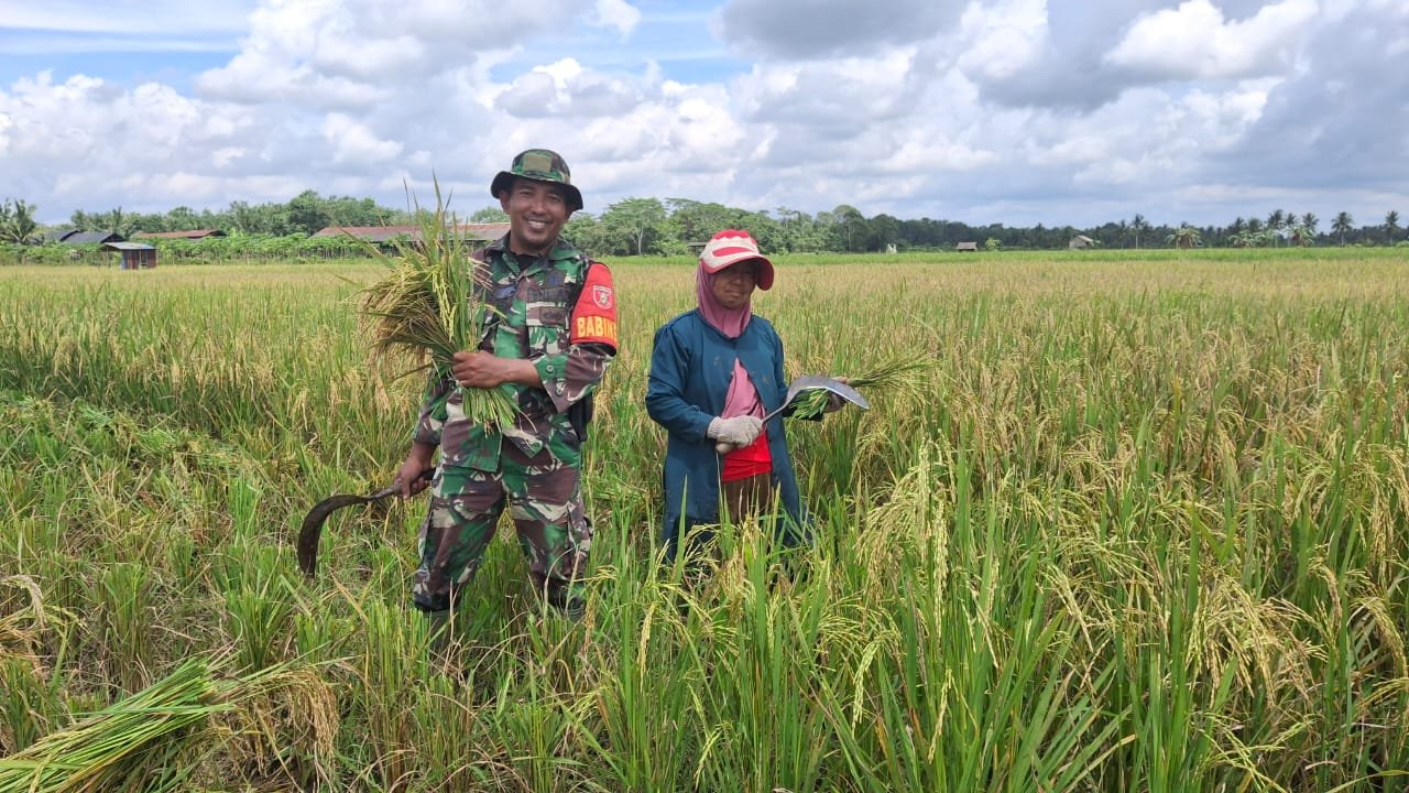 Dengan penuh semangat Babinsa berikan motivasi terhadap para petani dalam memanen padi, bukan hanya saat panen padi saja tetapi juga di saat penyemaian bibit padi, pengolahan lahan sawah dan perawatan. Seperti saat ini yang sedang mereka lakukan ialah memanem padi di sawah, sebagai wujud rasa kepedulian terhadap para petani.