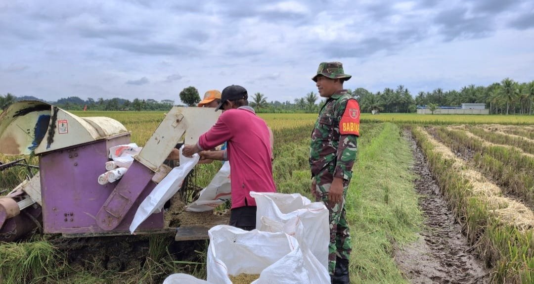 BONTANG – Serka Samsul, Babinsa Koramil 0908-03/Anggana, Kodim 0908/Bontang melaksanakan pendampingan kepada petani Poktan Rukun Santosa dalam kegiatan memanen Padi menggunakan alat modern yang di gelar di Desa Sidomulyo, Kecamatan Anggana, Kabupaten Kutai Kartanegara, Rabu (27/08/2025).