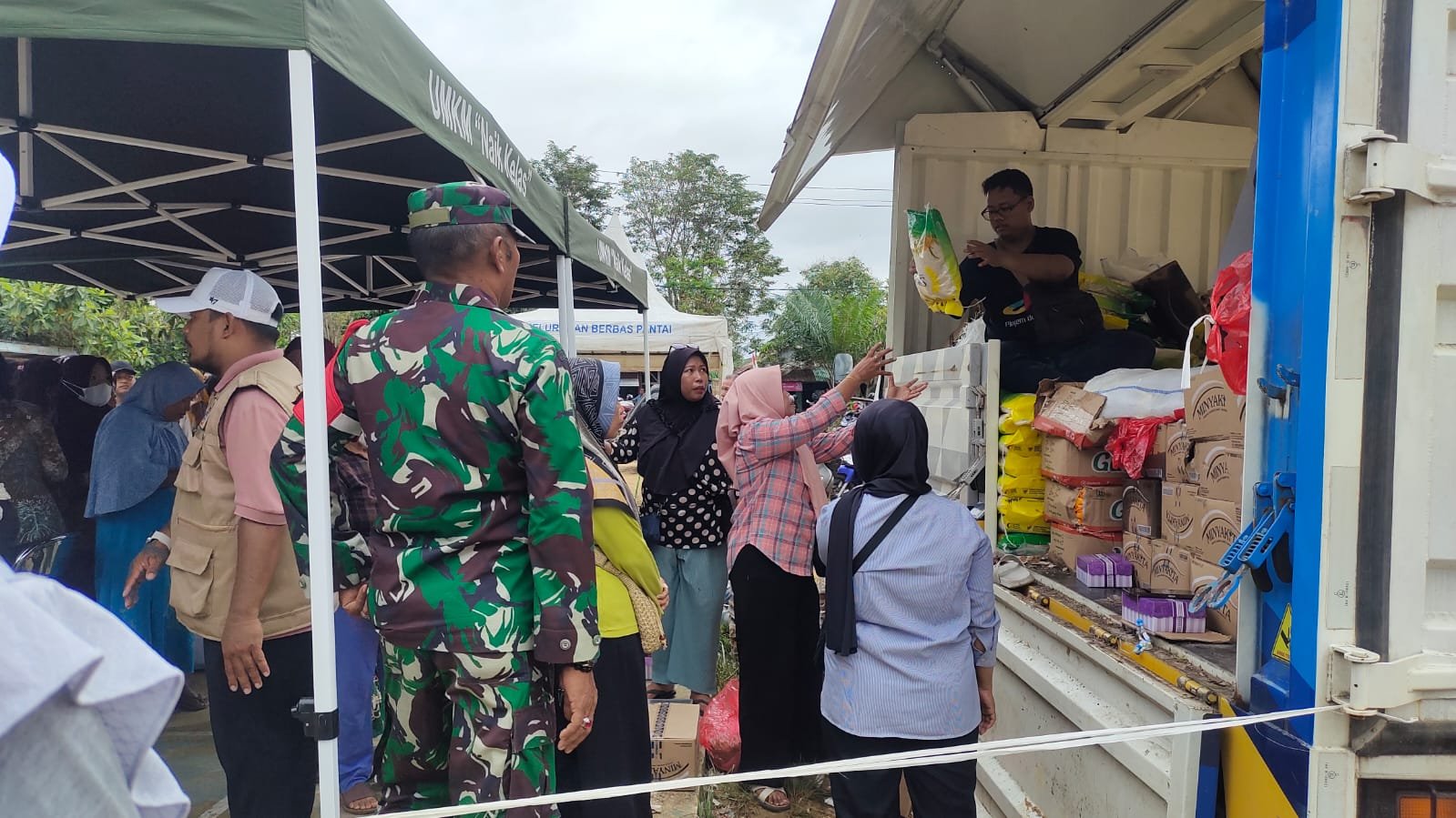 BONTANG – Guna memastikan pelaksanaan kegiatan berjalan dengan aman dan lancar, Babinsa Kelurahan Berbas Pantai, Koramil 0908-01/Loktuan, Kodim 0908/Bontang, Serma Firman mendampingi Dinas Koperasi Usaha Kecil Menengah Perindustrian dan Perdagangan Kota Bontang dalam kegiatan penjualan sembako murah di Kelurahan Berbas Pantai, Kecamatan Bontang Selatan, Kota Bontang, Kamis (28/08/2025).