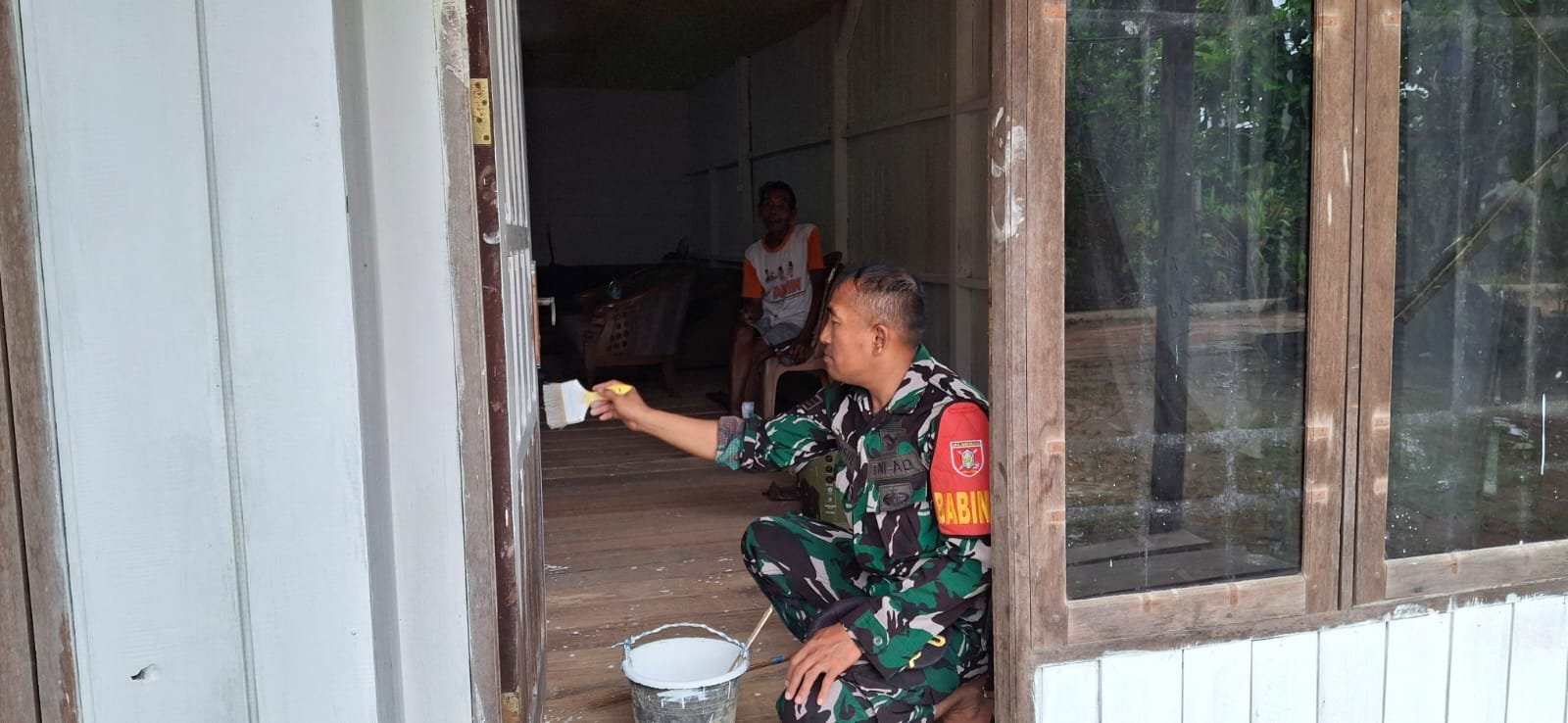 Kegiatan ini dilakukan sebagai bentuk kepedulian dan wujud nyata kemanunggalan TNI dengan rakyat. Serka Samsul bersama warga setempat bergotong royong mengecat rumah agar terlihat lebih rapi, bersih, dan nyaman untuk ditempati.