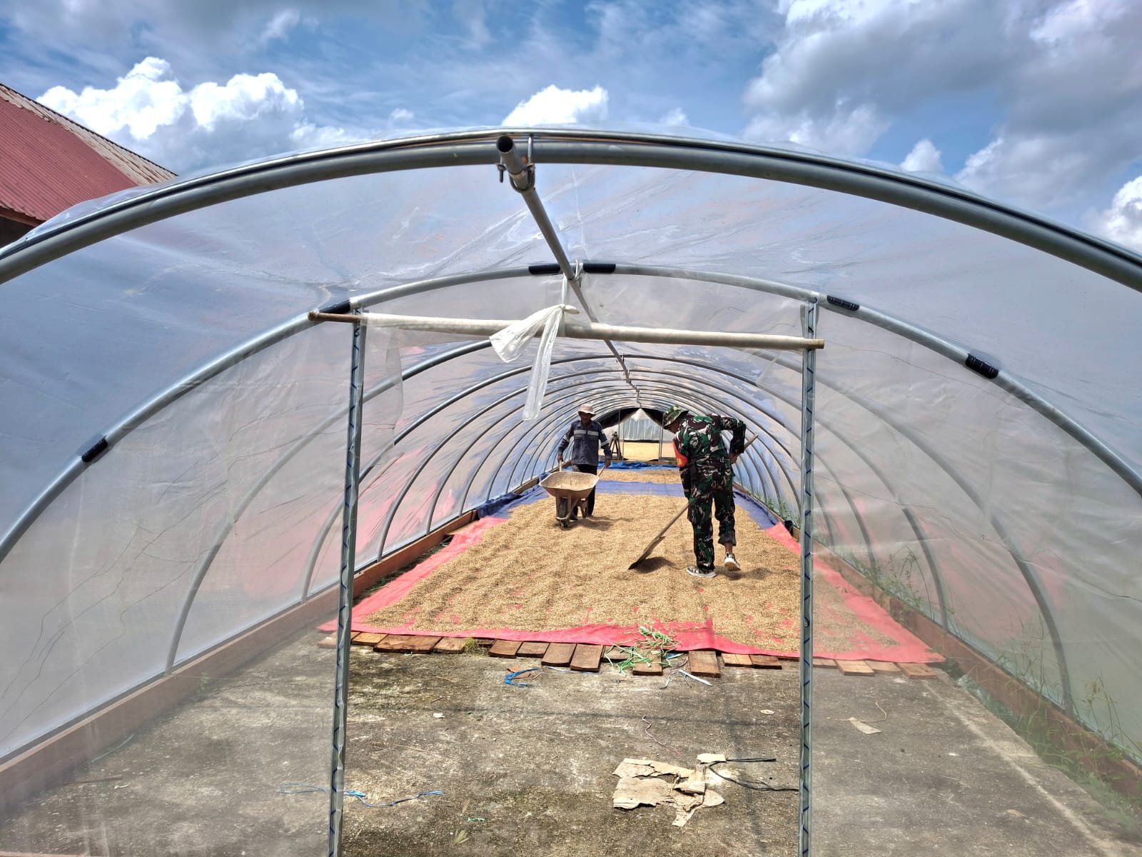 Anggana – Kodim 0908/Bontang melalui Babinsa Koramil 0908-03/Anggana terus menunjukkan komitmennya dalam mendukung kesejahteraan masyarakat di wilayah binaan. Hal tersebut terlihat saat Serka Samsul turun langsung membantu warga menjemur padi menggunakan plastik Ultra Violet (UV) di halaman Bumdes Desa Sidomulyo, Kecamatan Anggana, Kabupaten Kutai Kartanegara, Sabtu (28/02/2026).