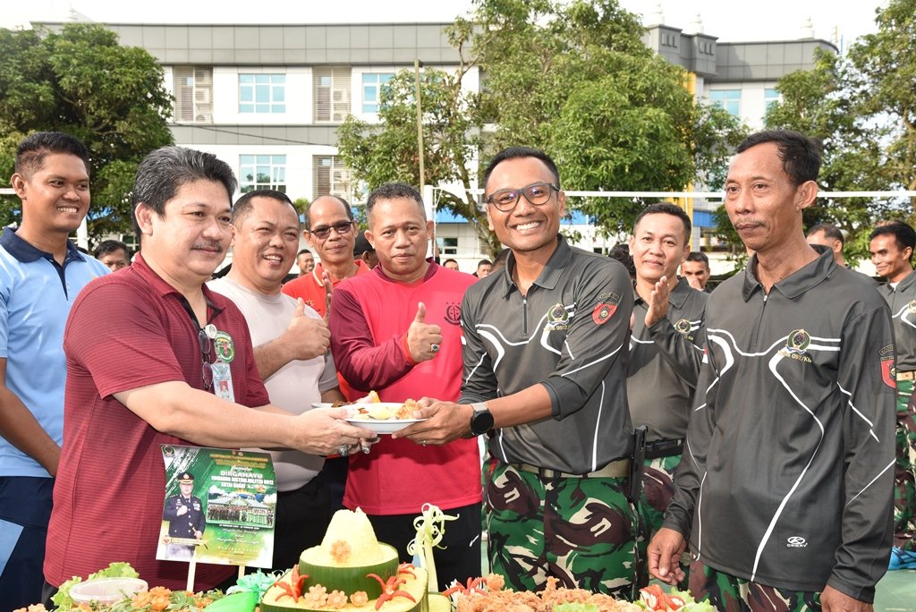 Hut Kodim—Kadis Pora Kubar Gamas Laden Senam Bersama, Ikut Jalan Santai Dan Memotong Tumpeng Pada Peringatan HUT Ke 14 Kodim 0912 Kubar.