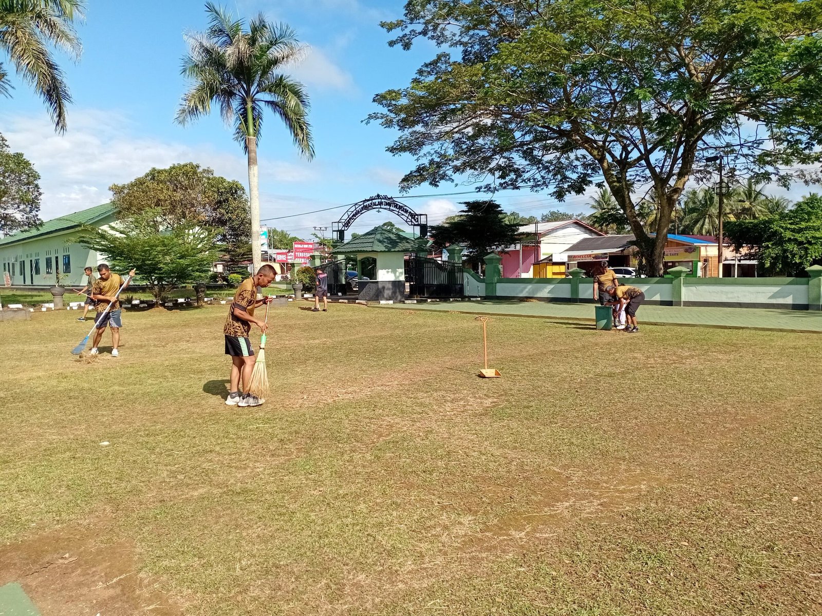 Seluruh anggota tampak antusias dan kompak dalam melaksanakan pembersihan, mulai dari memotong rumput, membersihkan saluran air, menyapu halaman, hingga merapikan area taman sekitar Makodim.