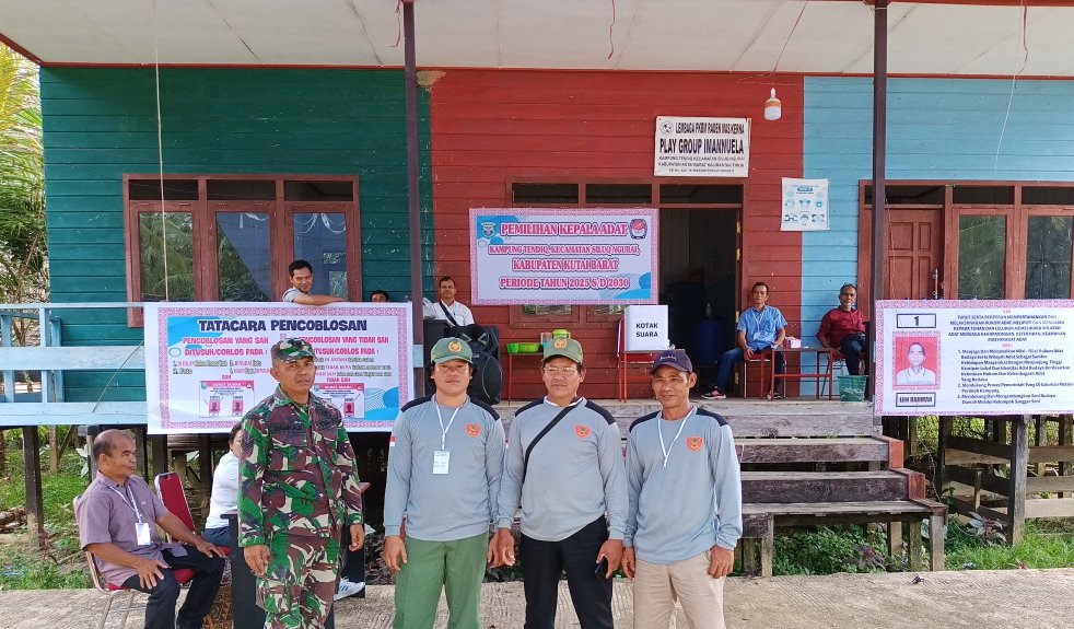 Kutai Barat – Babinsa Koramil 0912-05/Muara Pahu, Serka Hamka Sofyan, melaksanakan kegiatan pengamanan dan pemantauan jalannya pemilihan Kepala Adat Kampung Tendik, Kecamatan Siluq Ngurai, Kabupaten Kutai Barat, pada Rabu (8/10/2025).