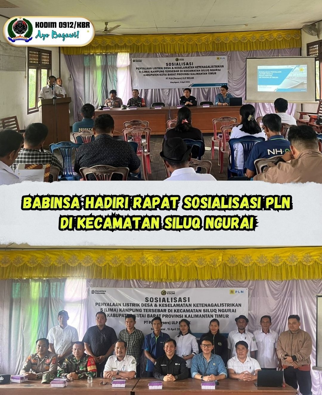 Kutai Barat – Babinsa Koramil 0912-05/Muara Pahu, Serka Hamka Sofyan menghadiri kegiatan rapat sosialisasi dari PLN yang dilaksanakan di Gedung PKK Kecamatan Siluq Ngurai, Kabupaten Kutai Barat, Rabu (15/04/2026) pukul 14.00 WITA.