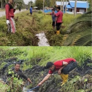 PENAJAM (http://kodim0913.korem091tniad.com/),- Babinsa Kelurahan Tanjung Tengah Koramil 01/Penajam Sertu Heri bersama warga RT 04 dan RT 03 Kelurahan Tanjung Tengah Kec Penajam Kab PPU, melaksanakan kegiatan gotong royong membersihkan parit, Minggu(06/7/2025).