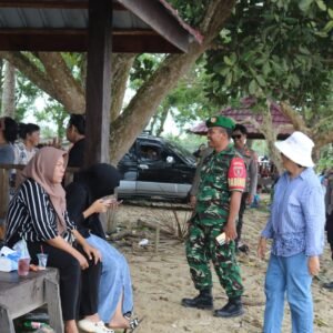 “Demi menjaga keamanan dan kenyamanan bagi masyarakat yang berkunjung ke objek wisata Pantai Corong Babinsa Sertu Heri memberikan himbauan kepada pengunjung pantai untuk selalu menjaga anak-anak yang sedang bermain atau mandi-mandi di laut,”tuturnya.