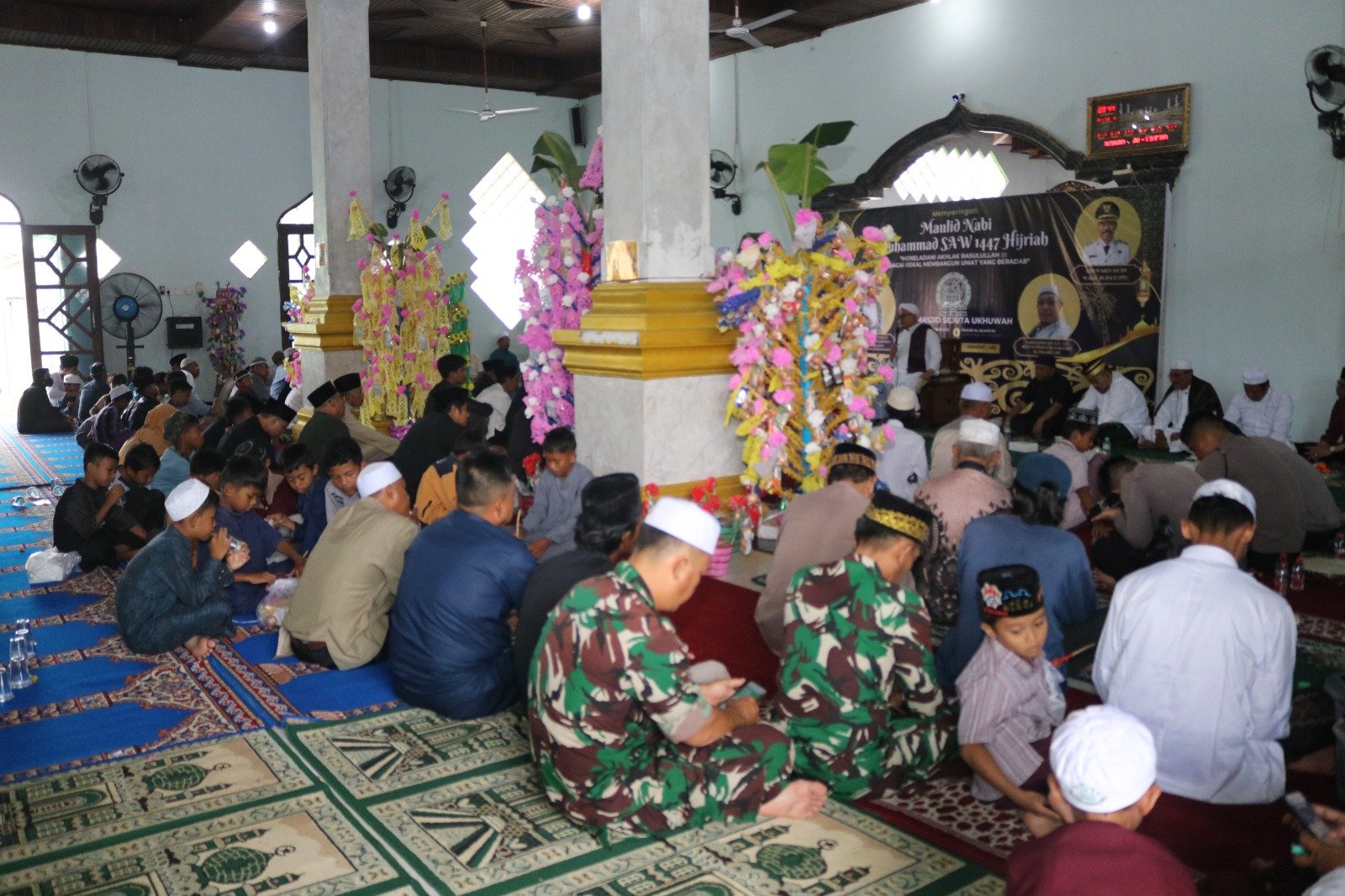 “Peringatan Maulid Nabi ini menjadi momentum bagi kita untuk meneladani akhlak Rasulullah SAW dalam kehidupan sehari-hari, serta memperkuat kebersamaan antara aparat dengan masyarakat. Kegiatan santunan anak yatim ini juga menjadi bentuk kepedulian sosial yang patut kita lestarikan,” ungkap Sertu Heri.