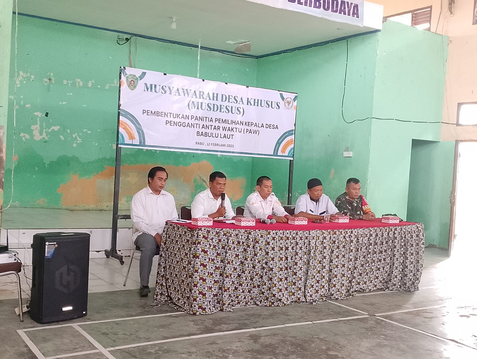 PENAJAM (http://kodim0913.korem091tniad.com/),- Bertempat di di Gedung Serbaguna Desa Babulu Laut Kecamatan Babulu Kab PPU,Babinsa Desa Babulu Laut Sertu Suwarno Koramil 03/Babulu Kodim 0913/PPU menghadiri acara Pembentukan Panitia Pilkades Pengganti Antar Waktu (PAW) Desa Babulu Laut. Rabu (12/2/2025)