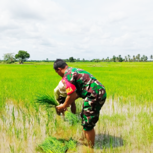“Ini sudah merupakan tugas kami sebagai aparatur kewilayahan membantu para petani dalam hal pertanian, seperti kegiatan tanam padi yang sedang saya kerjakan merupakan wujud kemanunggalan TNI- Rakyat,” ujarnya