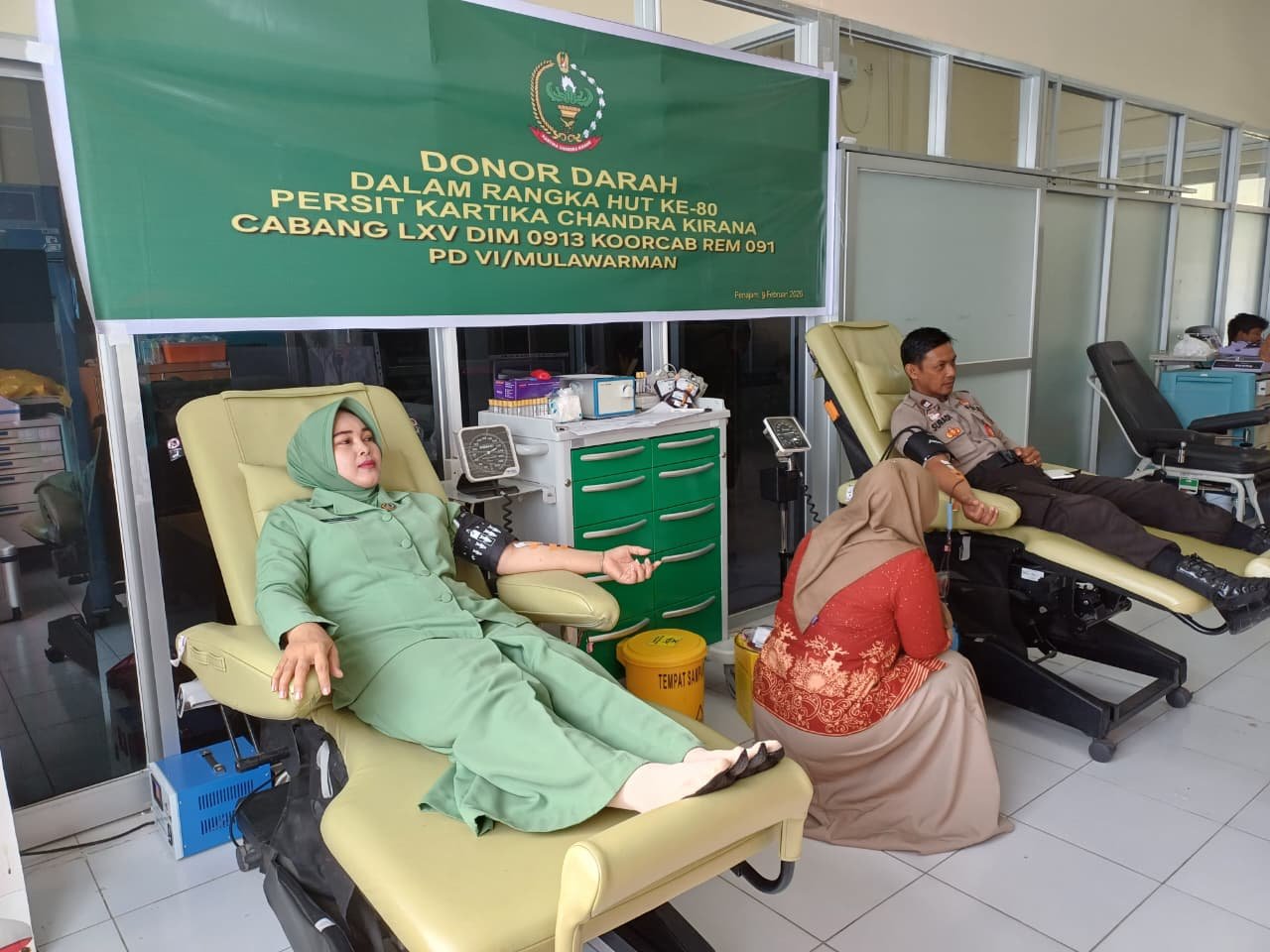 PENAJAM (http://korem091tniad.com/kodim0913/)- Sambut HUT ke-80 Persit KCK, pada Kamis (5/2) Persit Kartika Chandra Kirana (KCK) Cabang LXV Dim 0913 Koorcab Ren 091 PD VI/Mulawarman Tahun 2026 Gelar Donor Darah, yang bertempat di Ruang Unit transfusi darah (UTD) RSUD RAPB PPU.Jln Gostal Road Kelurahan Nipah – Nipah Kecamatan Penajam Kab PPU.Jum’at 96/2/2026)