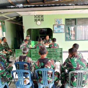 Danramil, menjelaskan, Ada beberapa point dan motivasi untuk menggugah semangat anggota. “Hindari pelanggaran dalam bentuk apapun, segera laporkan hal menonjol yang ada dilingkungan kita dan masyarakat sesuai jalur Komandonya, jangan arogan dan layani masyarakat dengan baik dan senyum teritorial, “ucap Danramil.