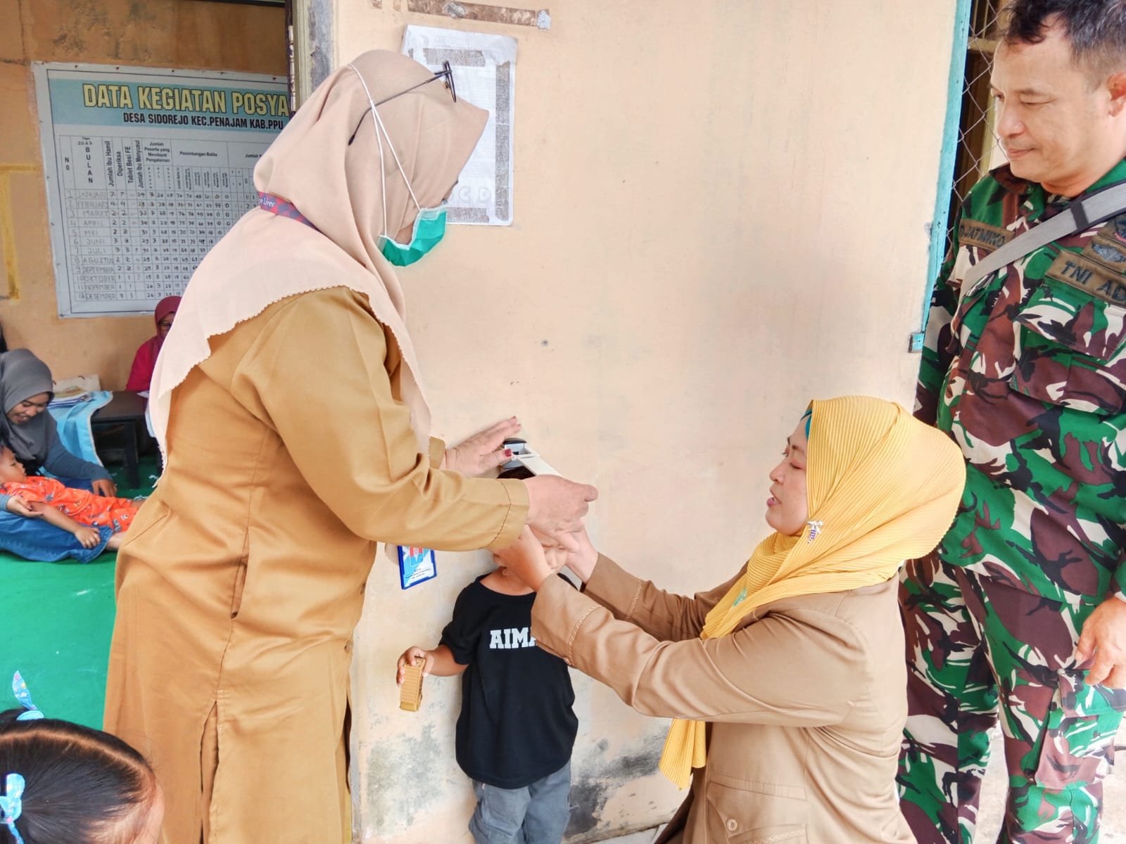 Babinsa Desa Sidorejo mengatakan bahwa pendampingan ini merupakan bagian dari tugas pembinaan teritorial untuk mendukung program pemerintah di bidang kesehatan, khususnya dalam upaya pencegahan stunting dan peningkatan kualitas kesehatan masyarakat sejak dini.